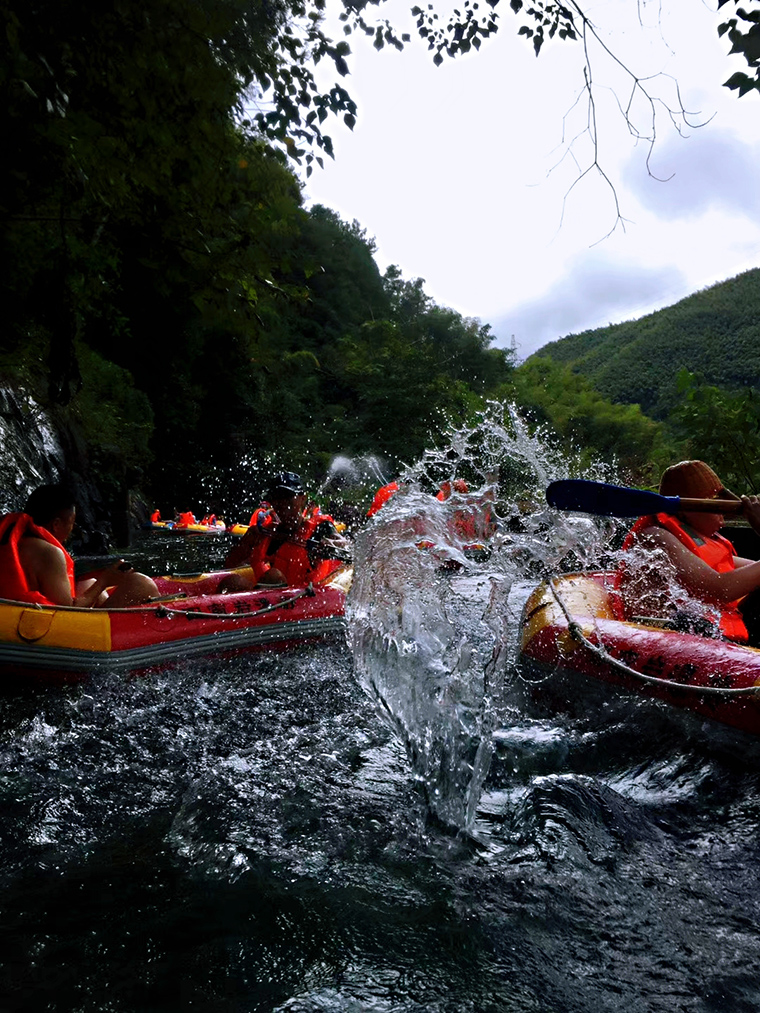 一個(gè)多(duō)小(xiǎo)時(shí)的漂流途中,喚起了大(dà)家(jiā)尋樂的童心,河(hé)道(dào)中彼此你(nǐ)追我趕,一旦相遇少(shǎo)不了要一場(chǎng)戲水(shuǐ)激戰。飛濺的河(hé)水(shuǐ)澆透了衣服,歡呼聲、被水(shuǐ)擊中的尖叫聲、開(kāi)懷的笑聲,回蕩在山(shān)谷,混響成一首快樂交響樂。待到漂流結束棄船(chuán)上(shàng)岸時(shí),一個(gè)個(gè)渾身透濕,涼意從腳漫到頭,相當爽快。
